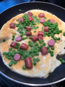 I really struggled with Friday’s dinner a hot dog and pea omelette as the
