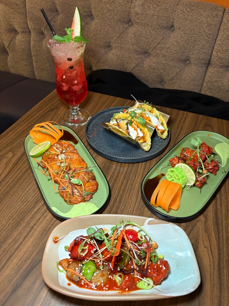 The chilli chicken brings a punch of heat, balanced by the sweetness of sautéed onions and peppers, and the sauce perfectly coats the tender chicken. Their chicken tacos offer a real fusion twist to Indian cuisine, blending crispy taco shells with vibrant Indian spices, creating a delightful crossover of textures and flavours. The seek kebab, with its juicy, spiced lamb mince, cooked in a tandoor, is an absolute must-try, showcasing traditional techniques with a bold and smoky flavour.