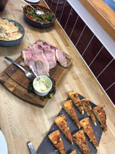 At lunch time we had a buffet style lunch which consisted of a cheese and caramelised onion quiche, beef with Stichelton mayo, mixed green salad,