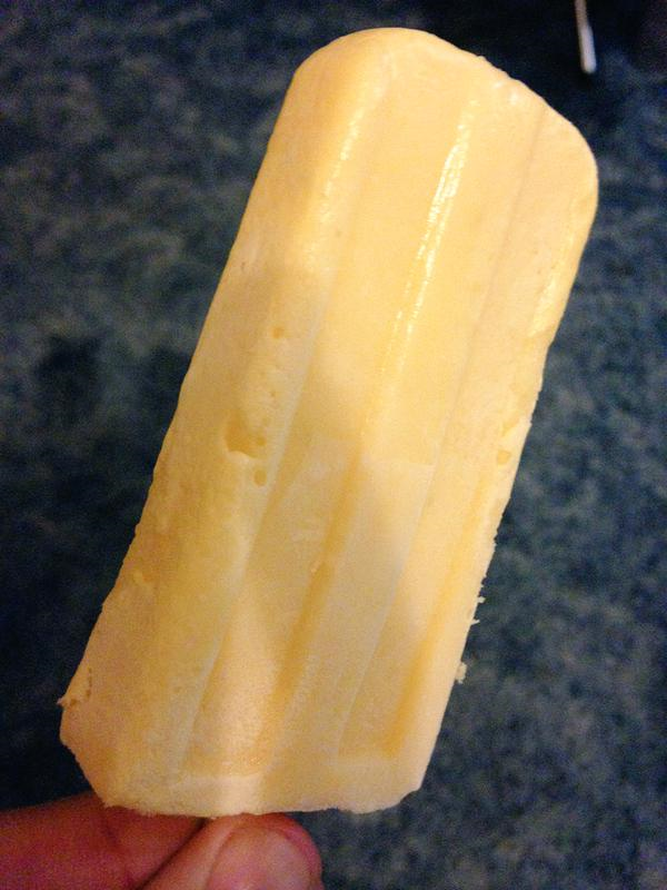 water, lime juice and lime zest). The lolly was a nice pastel yellow colour. There was a good balance again between the mango, coconut and the lime. The mango works well in balance with the cooling coconut and the contrast of the citrus of the lime and the lime zest. It is also quite creamy due to the coconut milk that it contains. This lolly is a good consistency and is smooth with no bits. It is refreshing with an added tang that the lime zest brings.