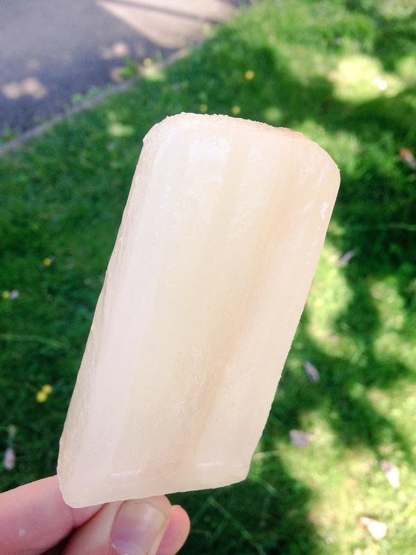 Banana milkshake: (Ingredients: banana, milk, cream, honey and lemon juice). The lolly is really creamy due to the inclusion of both milk and cream and this really helps it feel like an authentic banana milkshake. It also tastes quite similar to frozen yoghurt. The banana tastes fresh and has a mixture of textures, and is soft like a smoothie. It is light and dark yellow in patches from the bananas in the lolly.
